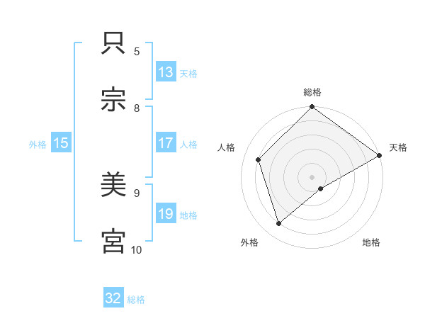 只宗 美宮さんの総格は32画の5点!