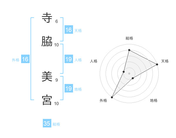 寺脇 美宮さんを姓名の画数から五運を鑑定