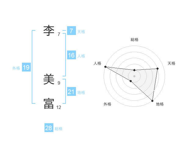 李 美富さんの総格は28画の1点!