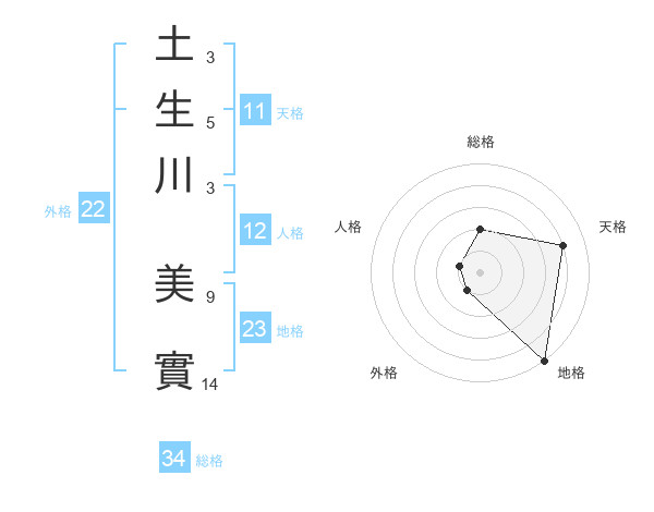 土生川 美實さんの総格は34画の2点!