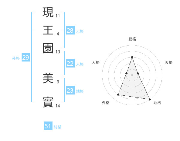 現王園 美實さんの総格は51画の3点!