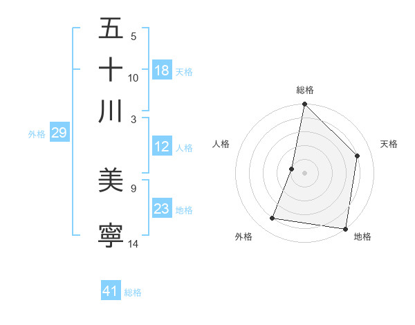 五十川 美寧さんを姓名の画数から五運を鑑定