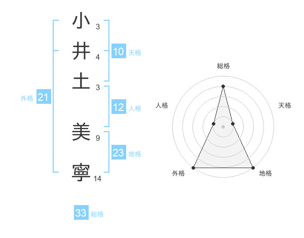 小井土 美寧さんを姓名の画数から五運を鑑定
