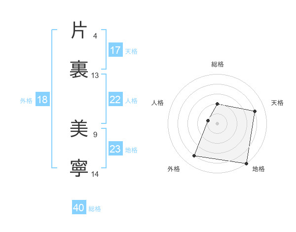 片裏 美寧さんの外格は18画の4点!