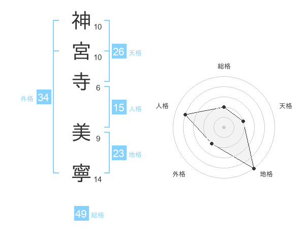 神宮寺 美寧さんを姓名の画数から五運を鑑定