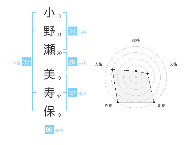 小野瀬 美寿保さんを姓名の画数から五運を鑑定