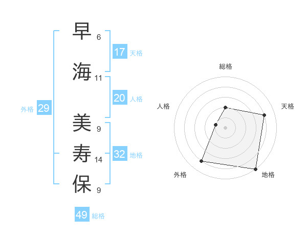 早海 美寿保さんの総格は49画の2点!