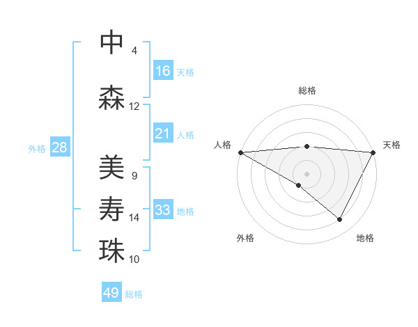 中森 美寿珠さんの総格は49画の2点!