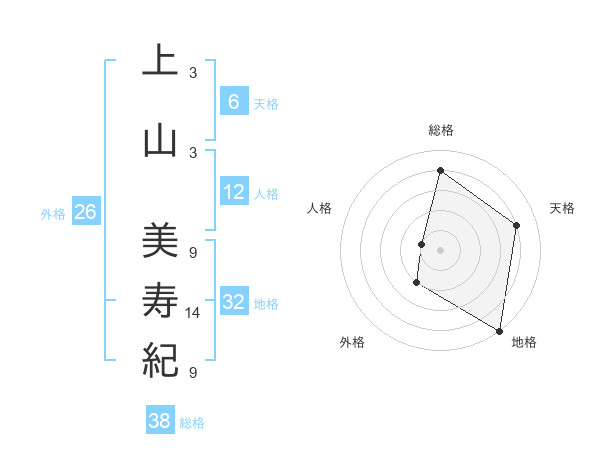 上山 美寿紀さんを姓名の画数から五運を鑑定