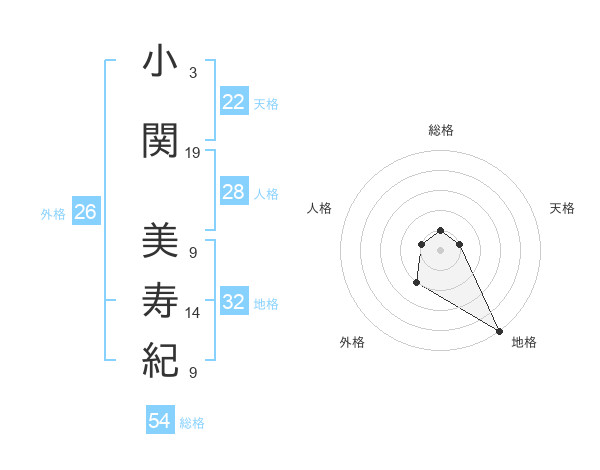 小関 美寿紀さんを姓名の画数から五運を鑑定