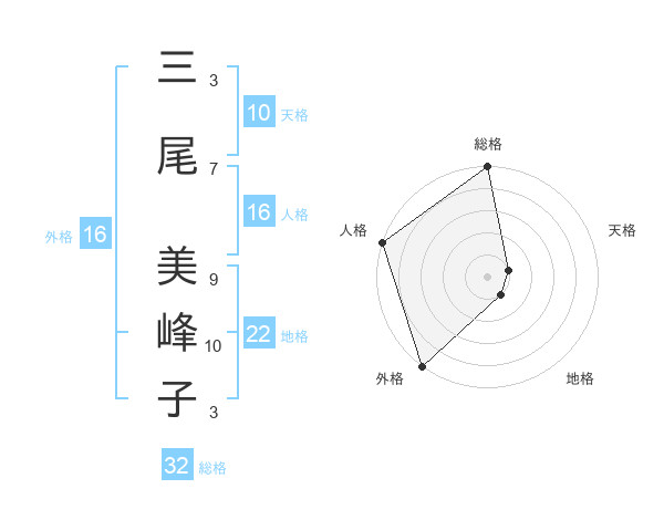 三尾 美峰子さんの総格は32画の5点!