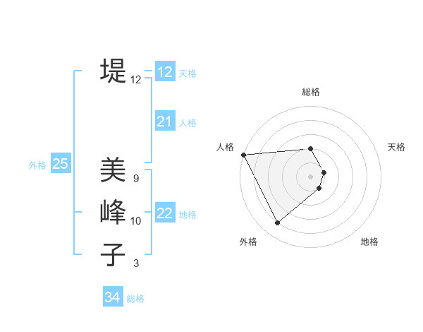 堤 美峰子さんの総格は34画の2点!