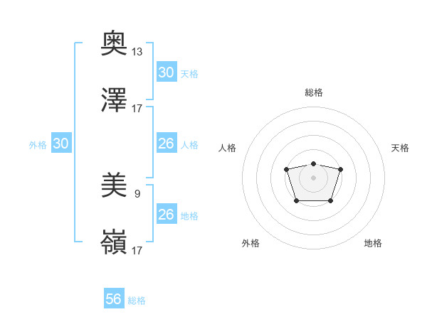 奥澤 美嶺さんを姓名の画数から五運を鑑定