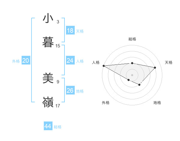小暮 美嶺さんを姓名の画数から五運を鑑定