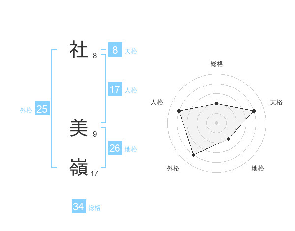 社 美嶺さんの総格は34画の2点!