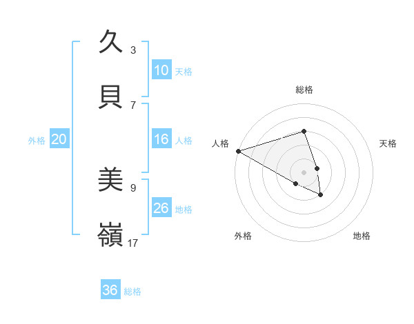 久貝 美嶺さんを姓名の画数から五運を鑑定