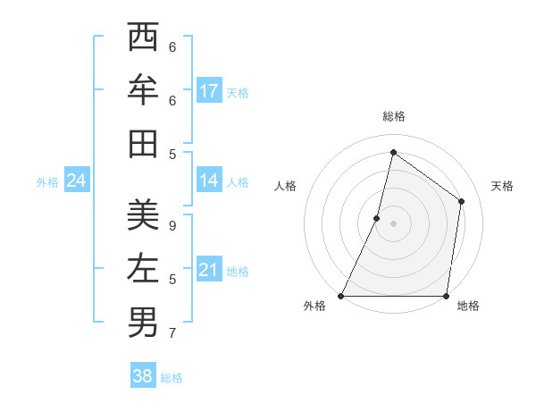 西牟田 美左男さんを姓名の画数から五運を鑑定