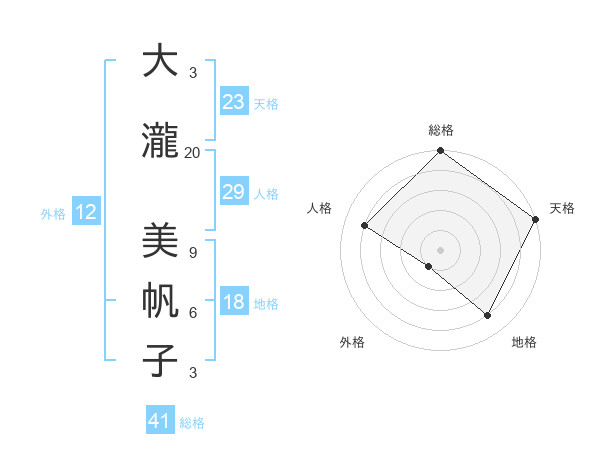 大瀧 美帆子さんを姓名の画数から五運を鑑定