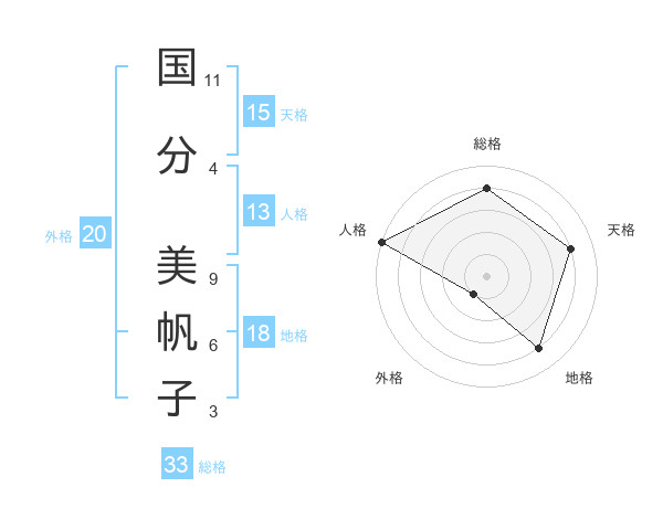 国分 美帆子さんの総格は33画の4点!