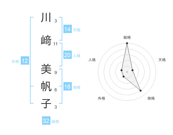 川﨑 美帆子さんを姓名の画数から五運を鑑定