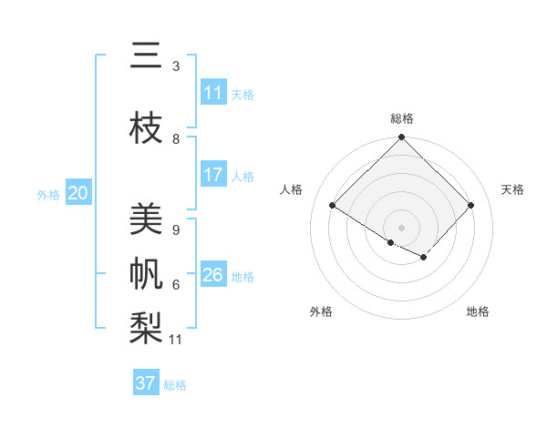 三枝 美帆梨さんを姓名の画数から五運を鑑定