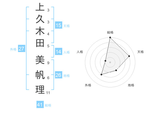 上久木田 美帆理さんの総格は41画の5点!