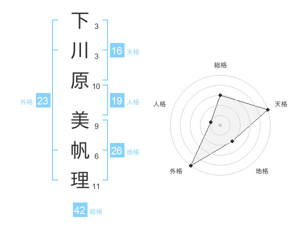 下川原 美帆理さんを姓名の画数から五運を鑑定