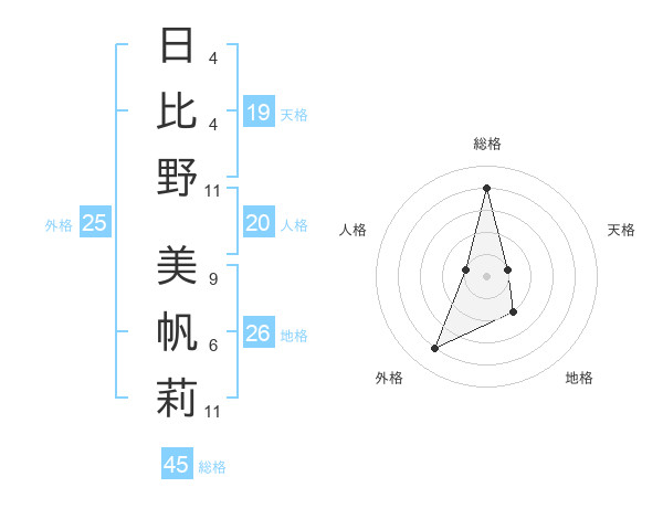 日比野 美帆莉さんを姓名の画数から五運を鑑定