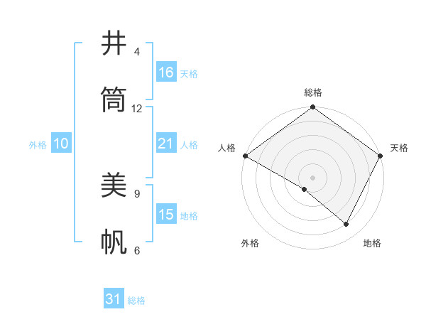 井筒 美帆さんを姓名の画数から五運を鑑定