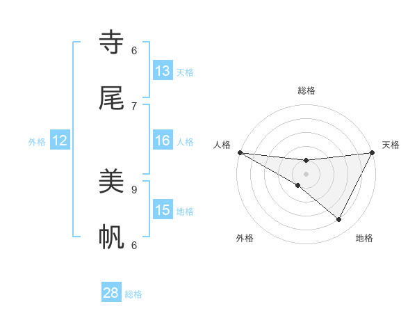 寺尾 美帆さんの天格は13画の5点!