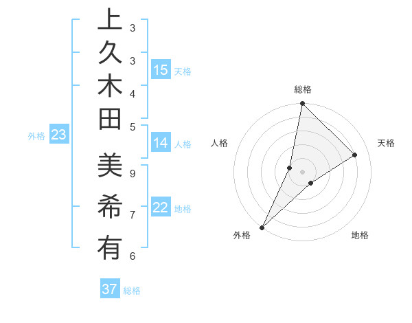 上久木田 美希有さんを姓名の画数から五運を鑑定