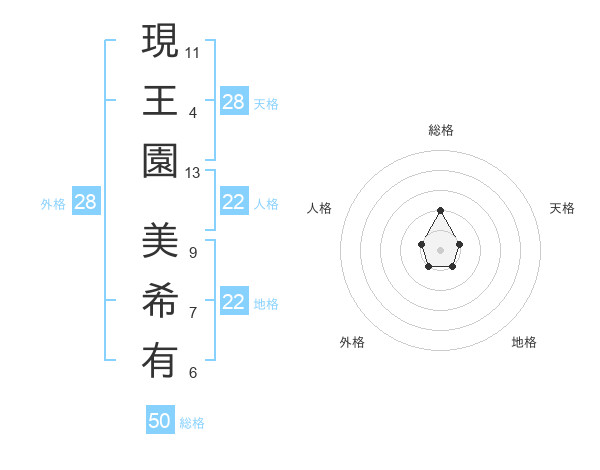 現王園 美希有さんを姓名の画数から五運を鑑定
