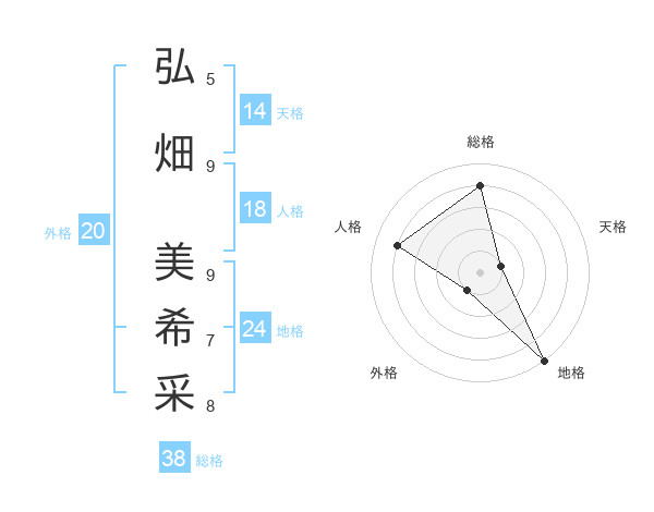 弘畑 美希采さんの総格は38画の4点!