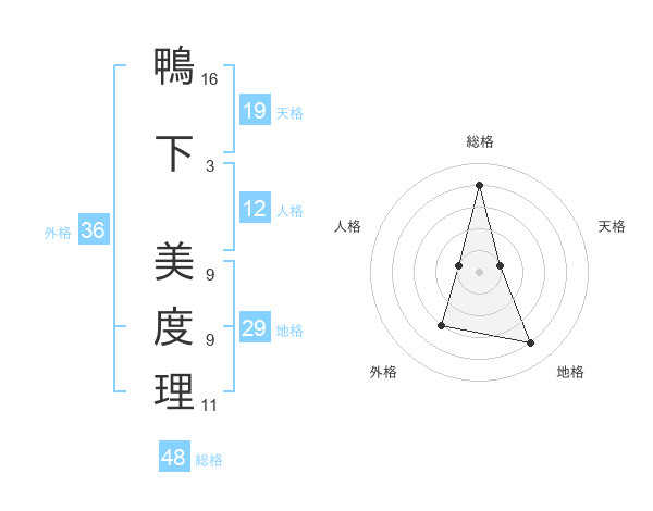 鴨下 美度理さんの総格は48画の4点!