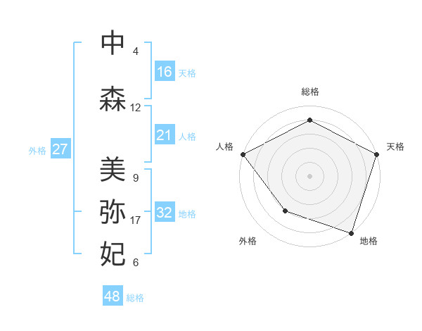 中森 美弥妃さんを姓名の画数から五運を鑑定