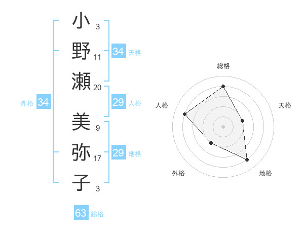 小野瀬 美弥子さんを姓名の画数から五運を鑑定