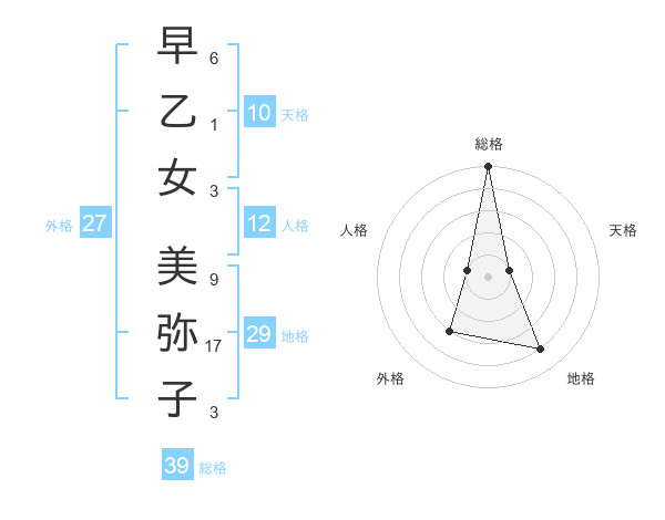 早乙女 美弥子さんの総格は39画の5点!
