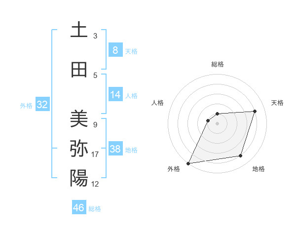 土田 美弥陽さんの外格は32画の5点