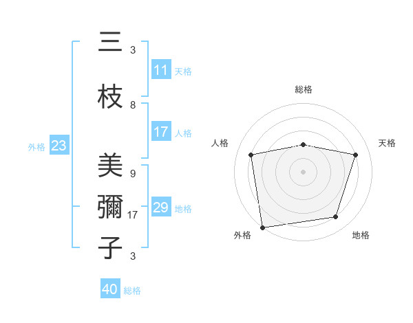 三枝 美彌子さんの外格は23画の5点!