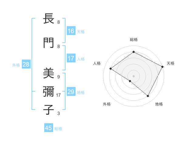 長門 美彌子さんを姓名の画数から五運を鑑定