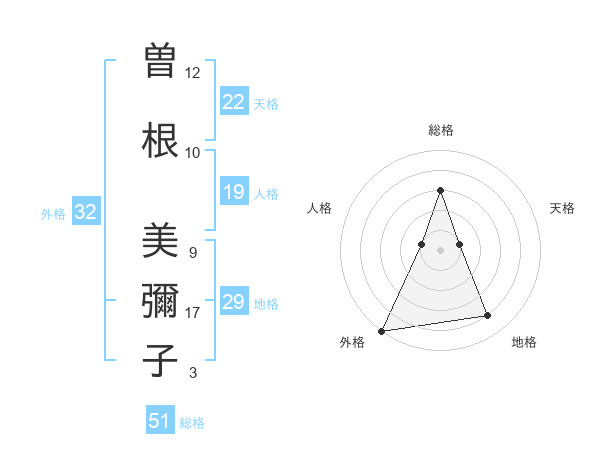 曽根 美彌子さんを姓名の画数から五運を鑑定