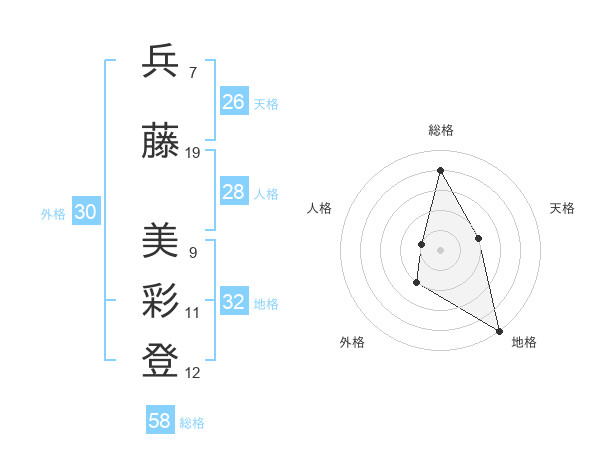 兵藤 美彩登さんを姓名の画数から五運を鑑定