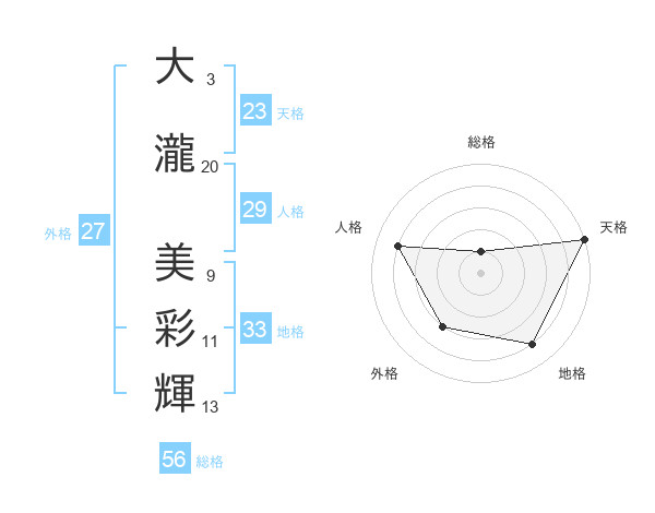 大瀧 美彩輝さんを姓名の画数から五運を鑑定