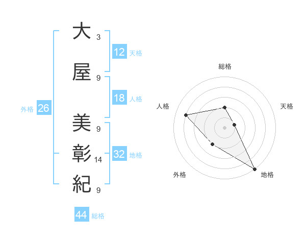大屋 美彰紀さんを姓名の画数から五運を鑑定