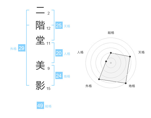 二階堂 美影さんの総格は49画の2点!