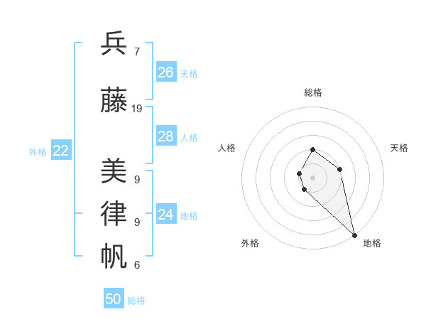 兵藤 美律帆さんを姓名の画数から五運を鑑定