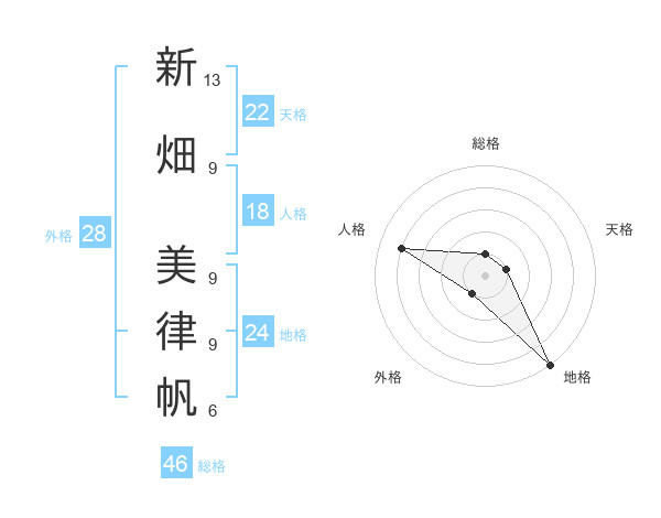 新畑 美律帆さんの天格は22画の1点!