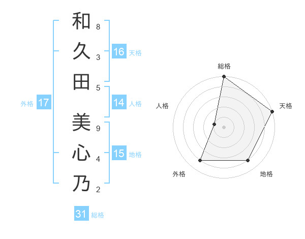 和久田 美心乃さんの総格は31画の5点!