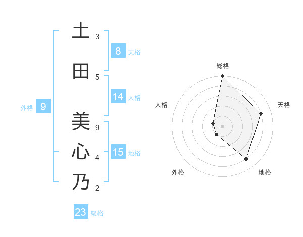 土田 美心乃さんを姓名の画数から五運を鑑定