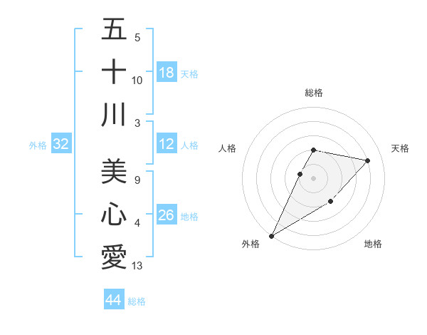 五十川 美心愛さんを姓名の画数から五運を鑑定